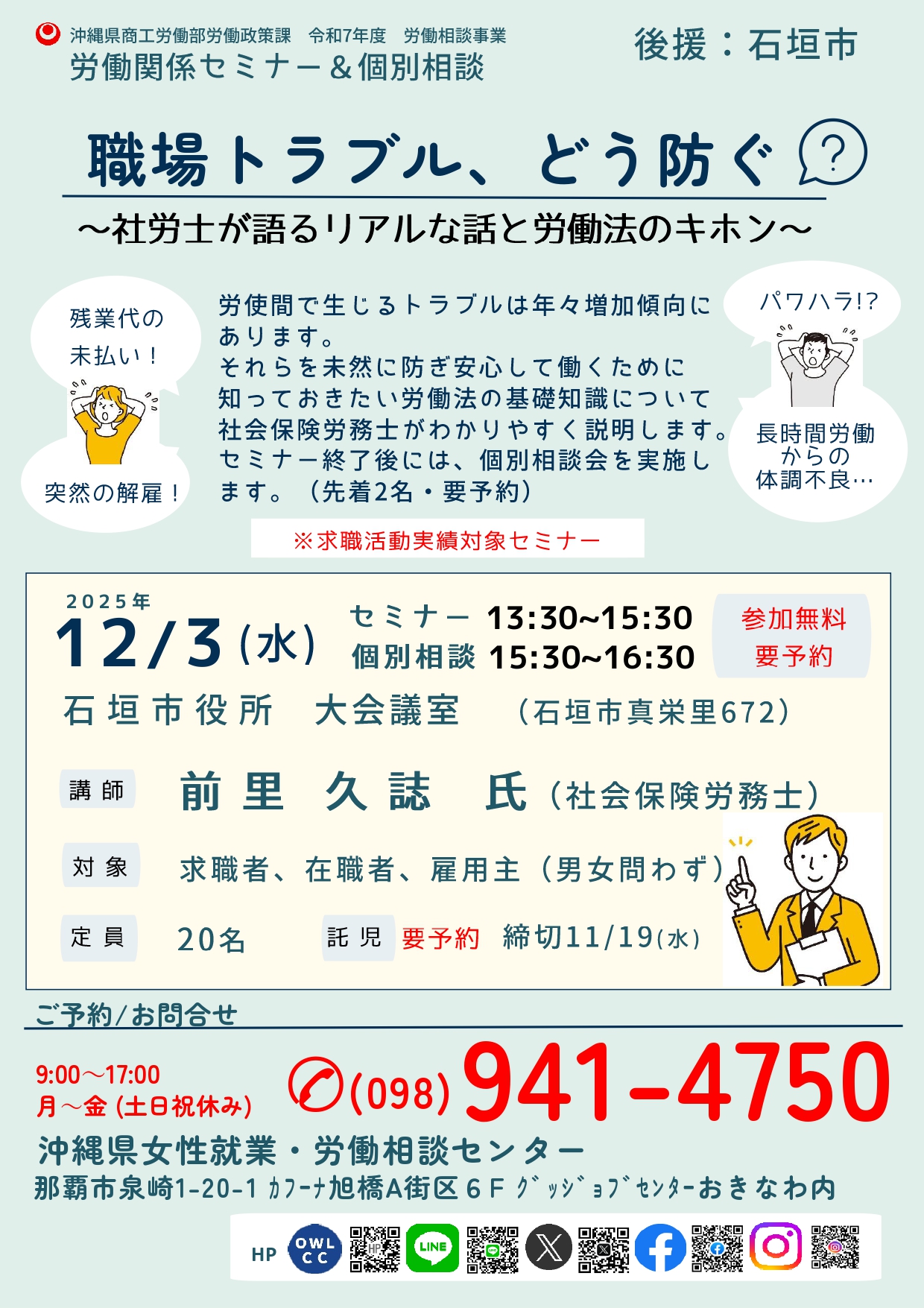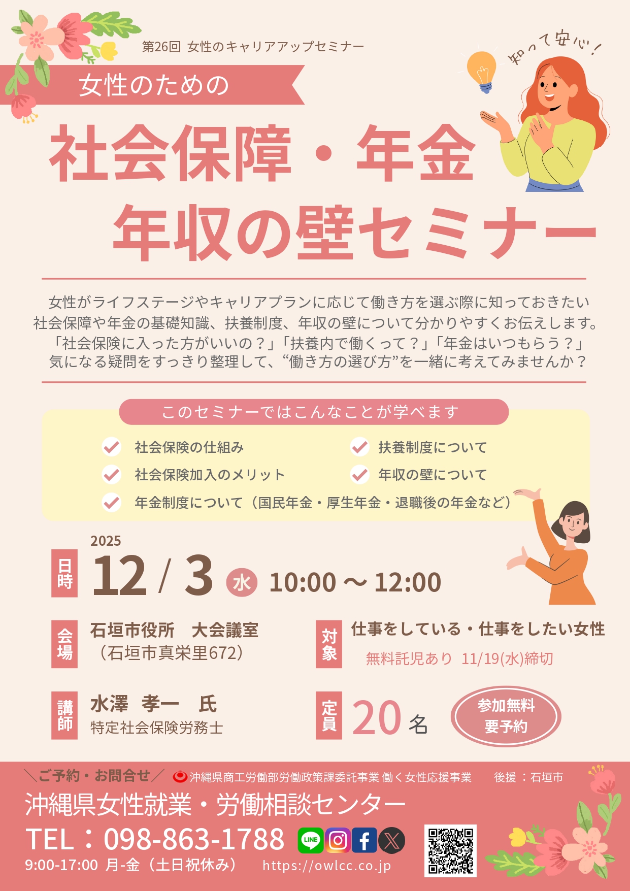 対象 : 求職者・在職者・雇用主(男女問わず)定員20名 託児要予約締切り11/19(水)