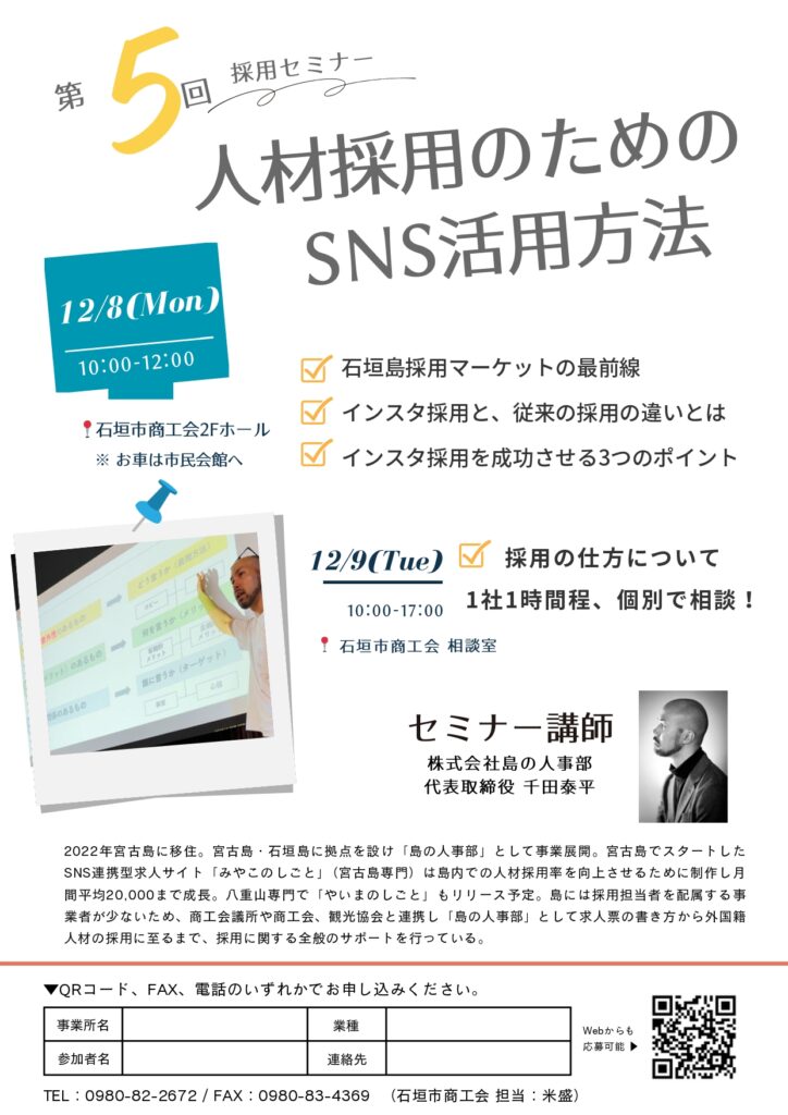 申込先:石垣市商工会(担当:米盛) TEL0980-82-2672/FAX0980-83-4369